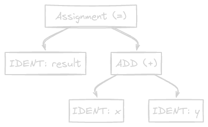) is the right-hand side. The right-hand side is itself an expression: a binary addition. The parser would build a tree structure that looks something like this: